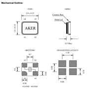 C1E-96.000-8-1216-X2-R,96MHz,2016mm,臺灣AKER安基晶振尺寸圖