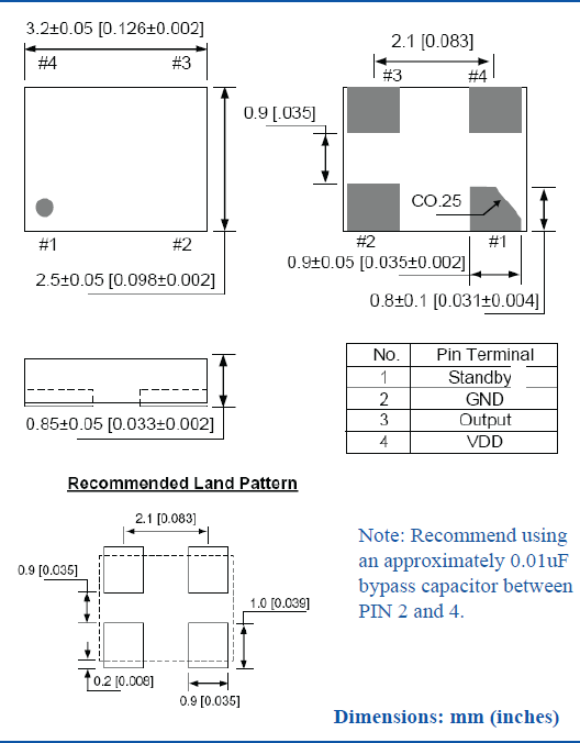 Size/Dimension尺寸 3225晶振 最小包裝數MPQ: 3000