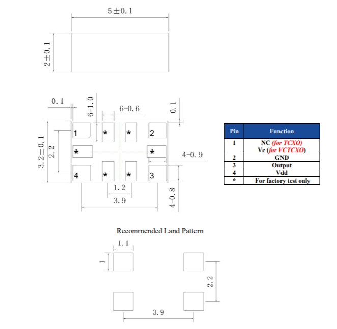Size/Dimension尺寸 7.0 x 5.0 x 1.9mm 最小包裝數MPQ: 2000