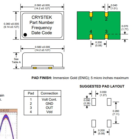 CVSS-945-122.880 Crystek晶振 CVSS-945 VCXO 122.88MHz SineWave 5V
