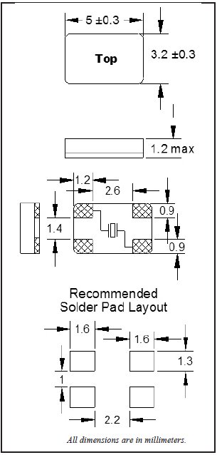 | Frequency Stability頻率穩定度 | ±30ppm | 高度 Package Height: | 1.20mm |