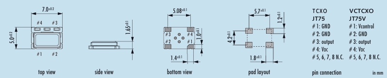 Type類型 VC-TCXO PackageHeight高度 1.65MM