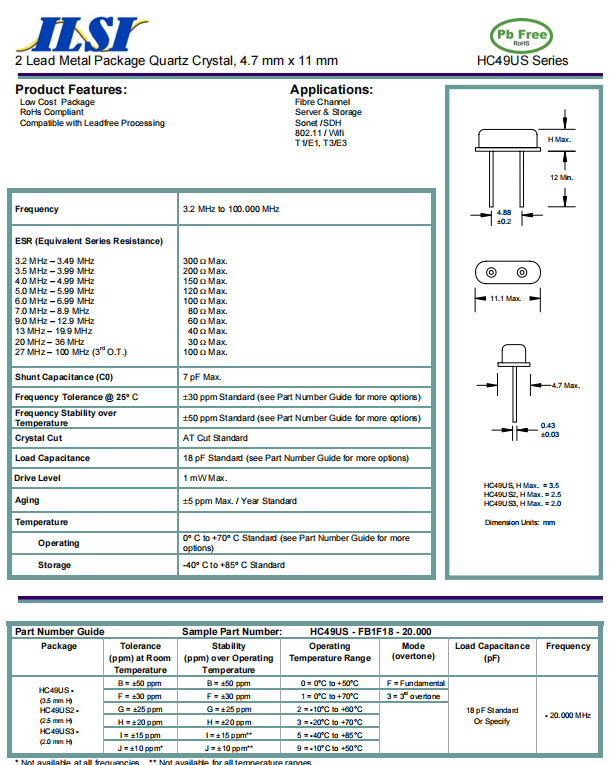 HC49US-FF5F18-18.4320~ILSI插件晶振~18.432MHz~18pf ,參數圖