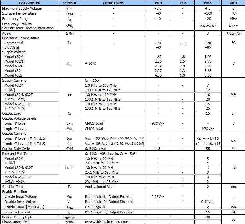 時(shí)鐘有源晶振Model632,3225mm振蕩器,西迪斯晶振