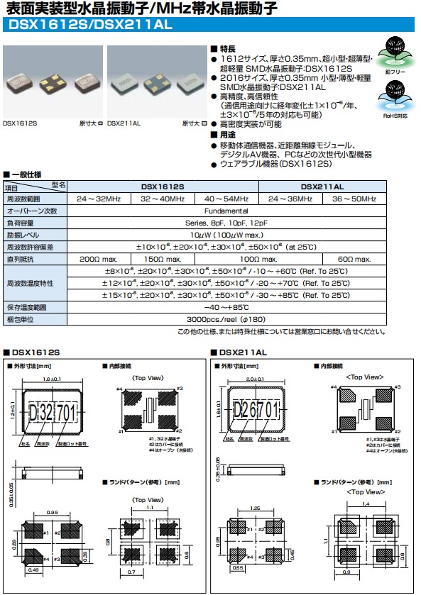KDS四腳貼片晶振,DSX211AL超小型晶振,1ZCP37400AA0H無源晶振