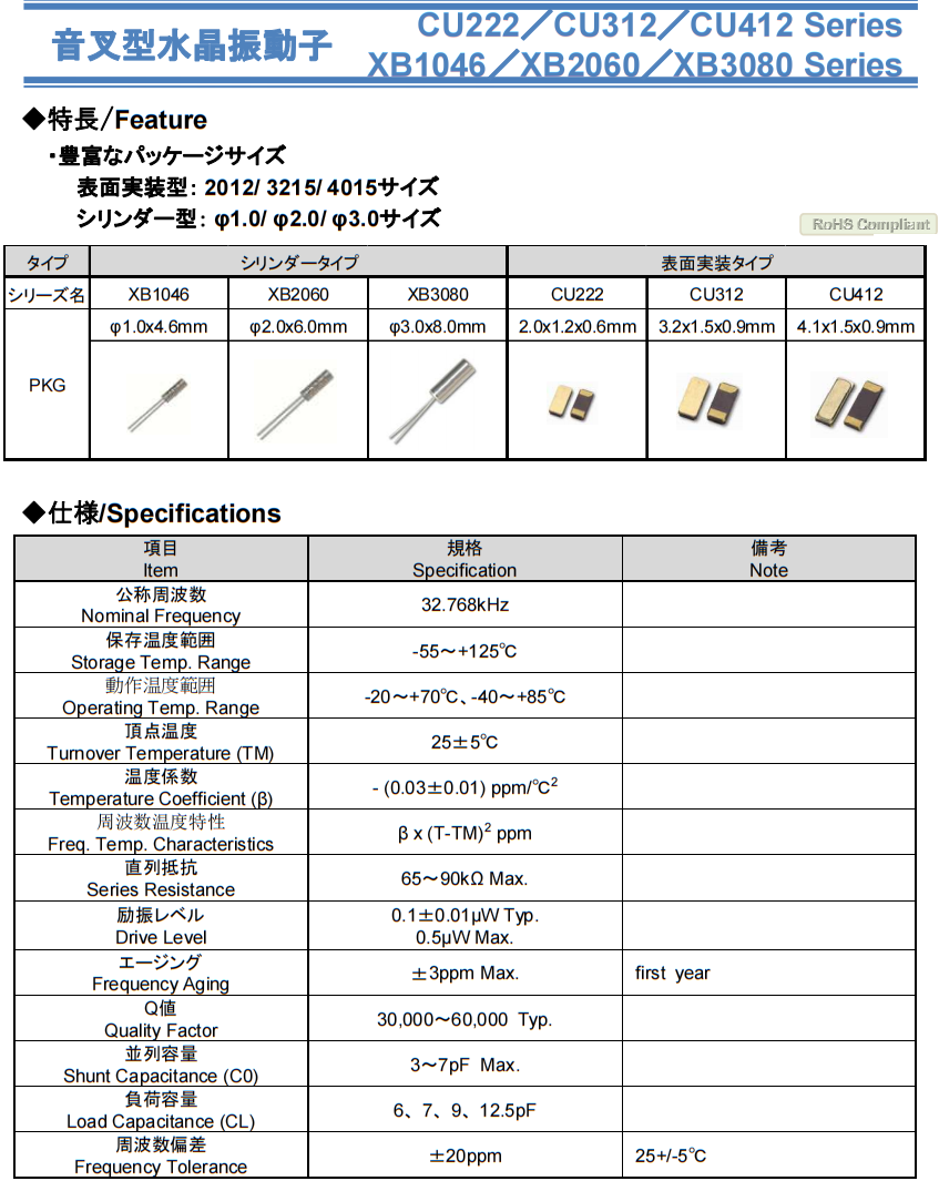 | 頻率偏差度 | ±20ppm | 25+/-5℃ |