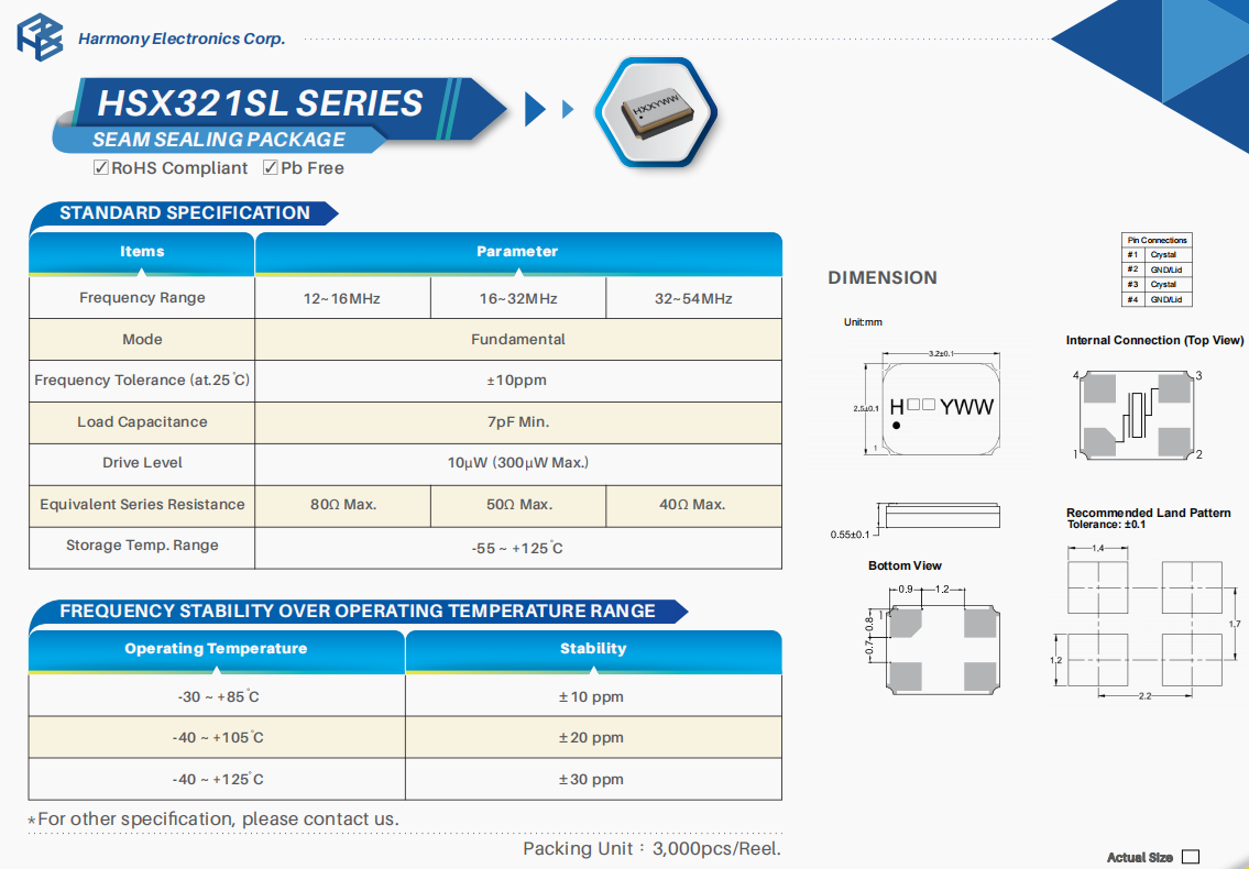 | X3S016000DC1H‐V | 加高晶振 | HSX321S | 16 MHz | ±30ppm | 12pF | -40°C ~ 85°C |