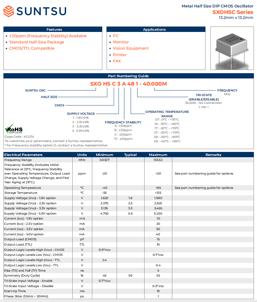 | SQG32L3D481N-312.500M | LVDS | 1.5ps | 3.3V±5% | ±20ppm | -40°C - +85°C |