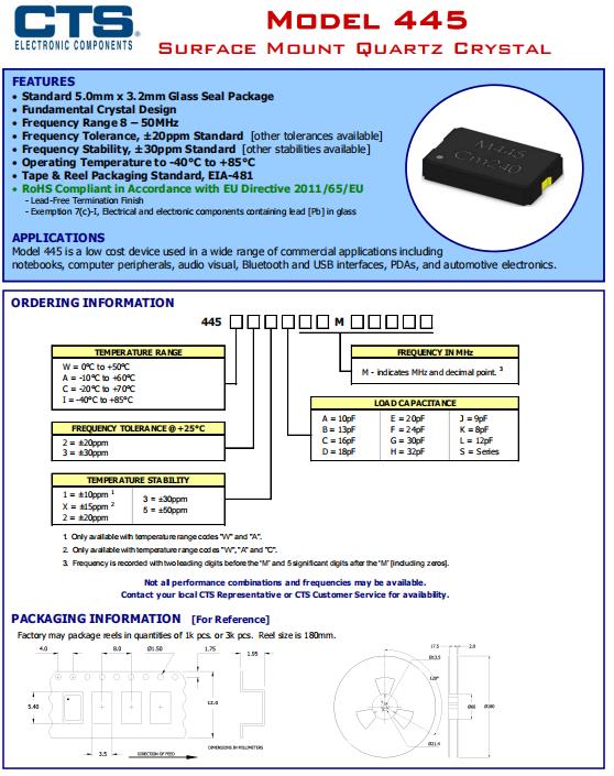 | 445I25S30M00000 | CTS晶振 | 445 | MHz Crystal | 30MHz |