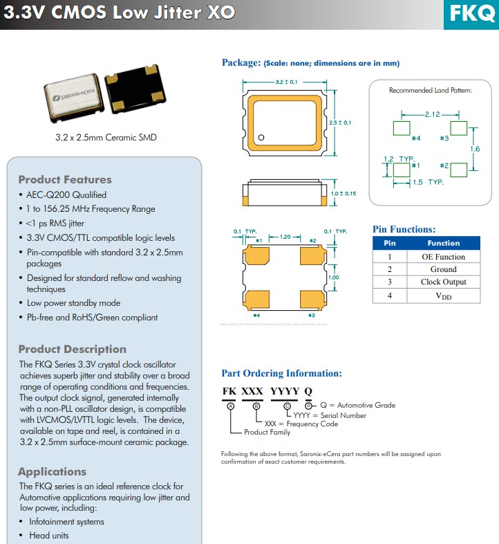 FKQ系列實現出色的抖動和穩定性,FKD330001,FK4000036,晶體振蕩器,汽車電子晶振