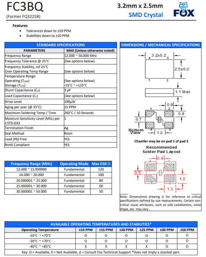 | FQ3225BR-25.000 | FOX晶振 | FQ3225B | MHz Crystal | 25MHz | ±50ppm |