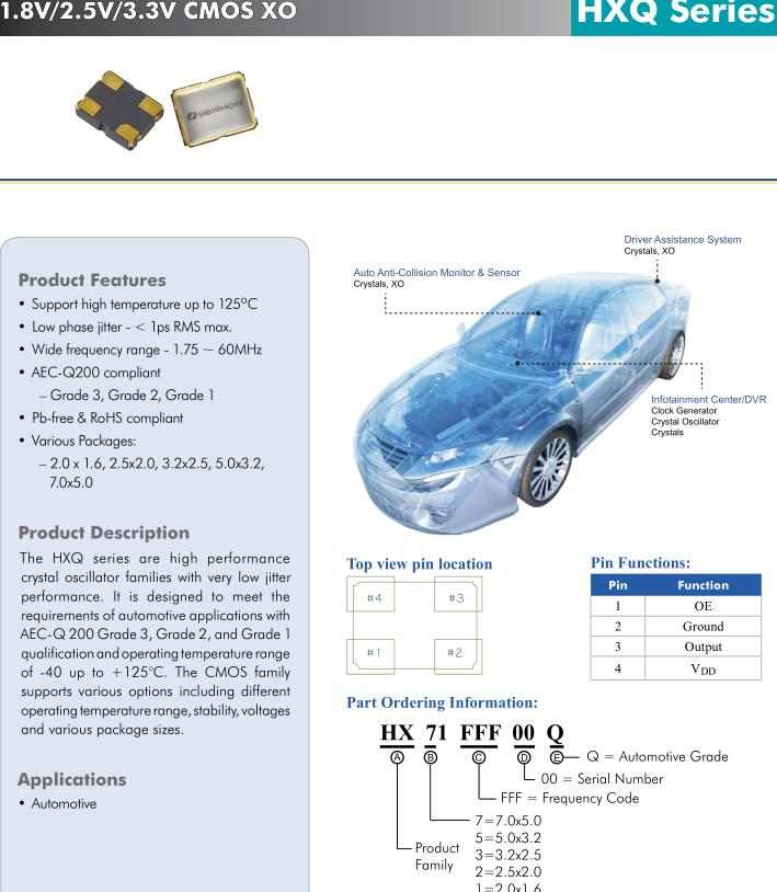 亞陶編碼HX3124000Q專為汽車應(yīng)用開發(fā)非常低抖動的晶體振蕩器,ECERA有源晶振