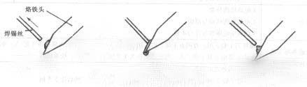 如下圖所示,當烙鐵頭沿斜上方撤離時,烙鐵頭上帶走少量的錫珠,它可形成圓滑的焊點;圖1所示,當烙鐵頭垂直向上撤離時,可形成拉尖毛刺的焊點;圖2所示,當烙鐵頭以水平方向撤離時,烙鐵頭可帶走大部分錫珠。