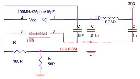 有源晶振不需要DSP 的內部振蕩器,信號質量好,比較穩(wěn)定,而且連接方式相對簡單(主要是做好電源濾波,通常使用一個電容和電感構成的PI 型濾波網絡,輸出端用一個小阻值的電阻過濾信號即可),不需要復雜的配置。