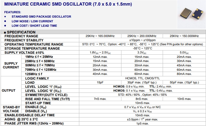 | OCETGLJTNF-100.000000 | Taitien | OC | XO (Standard) | 100 MHz | CMOS | 3.3V | ±50ppm |
