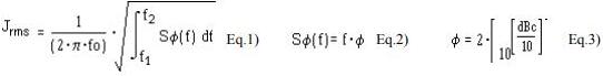有很多論文描述了如何根據(jù)相位噪聲來推導表達RMS抖動的方程式.我們將向您展示的是為MicrosoftExcel電子表格開發(fā)的實用應用程序.任何對分析相位噪聲數(shù)據(jù)感興趣的工程師都可以使用此工具.我們從建立良好的方程式開始,以相位噪聲為單位,以秒為單位計算RMS抖動.