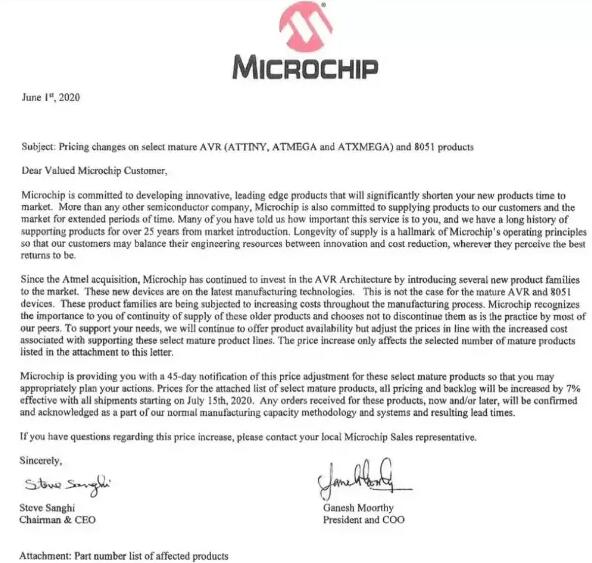 面對來勢洶洶的新冠疫情,美國當地的應對方案和措施顯示是不合格的,每天仍有萬人以上的新增感染病例,累計人數直逼200萬大頭,美國多家企業和生產工廠已經不堪重負.美國是公認的電子元件發達國家,許多國家包括中國都長期采購他們生產的種類元器件和組件,但如今因為疫情以及美國國內矛盾引發的暴亂,許多產品交期延長一倍不止,而且缺少作業人員,原材料成本上升.美國Microchip Technology Inc.公司6月1日,給所有客戶發了一封調價函,內容稱7月15號之后,旗下的部分產品單價將上調7%. Microchip是一家主要做微處理器,微控制器,頻率控制元件,數據轉換器等多種電子產品的制造商,總部位于亞利桑那州錢德勒,國內市場上有部分生產廠家,使用Microchip公司生產的石英晶體振蕩器和MEMS硅振蕩器.但是幸運的是,在調價名單中,沒有包括時鐘元件,而且一直以來Microchip晶振的性價比就比較高,同樣的規格和品質,價格一般不會很高,而且質量和口碑在業界算是比較高的.